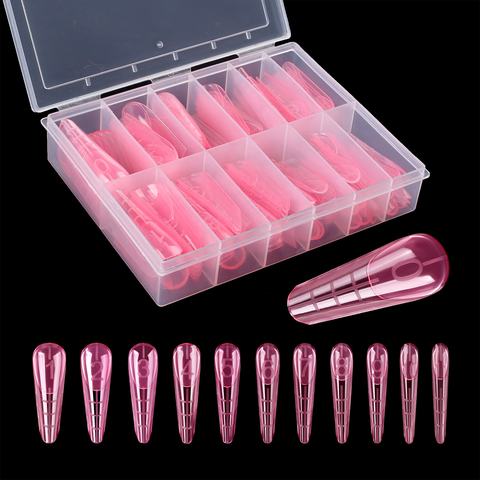 BQAN Groothandelaren XXL Volledige Dekking Nagels Dubbele Vorm Franse Roze PP Plastic Verlengnagels Tip Aangepaste Logo