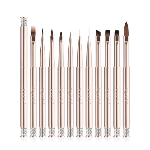 ชุดแปรงทำเล็บอะคริลิคขนโคเลียนสกี้ ด้ามจับโลหะคุณภาพสูง ประดับเพชร พร้อมแปรงไลเนอร์สำหรับตกแต่งเล็บ รับทำโลโก้ตามสั่ง